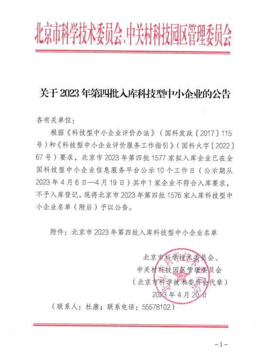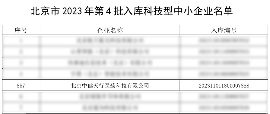 近日,北京市科學(xué)技術(shù)委員會(huì),公布了2023年第四批入庫“北京市科技型中小企業(yè)”名單,北京中健天行醫(yī)藥科技有限公司再次榮獲北京市科技型中小企業(yè)認(rèn)定,這一殊榮標(biāo)志著我司在研發(fā)申報(bào)科技創(chuàng)新領(lǐng)域取得了顯著的成就,也是對(duì)其不斷努力和創(chuàng)新能力的高度肯定。
