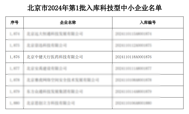 近日,北京市科學(xué)技術(shù)委員會發(fā)布了《北京市2024年第1批入庫科技型中小企業(yè)名單公告》。北京中健天行醫(yī)藥科技有限公司再次榮獲北京市科技型中小企業(yè)認定,這是公司連續(xù)第七年獲得此殊榮。此次認定充分肯定了我司在研發(fā)創(chuàng)新方面的實力,標志著公司在創(chuàng)新和研發(fā)領(lǐng)域得到了國家相關(guān)部門的認可,未來,我司將進一步打造科技創(chuàng)新平臺,提升自主創(chuàng)新能力和企業(yè)核心競爭力,推動公司實現(xiàn)跨越式發(fā)展。