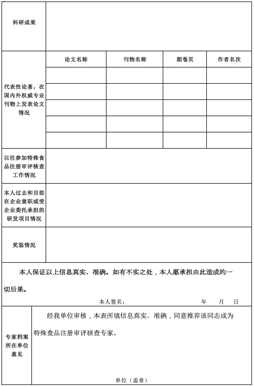 (四)開展特殊食品注冊審評核查工作前,簽署專家承諾書(附件2);