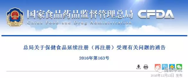 為加強和規(guī)范保健食品延續(xù)注冊(再注冊)管理,保障《保健食品注冊與備案管理辦法》平穩(wěn)實施,經(jīng)研究,現(xiàn)就保健食品延續(xù)注冊(再注冊)申請受理等有關(guān)事項通告如下: