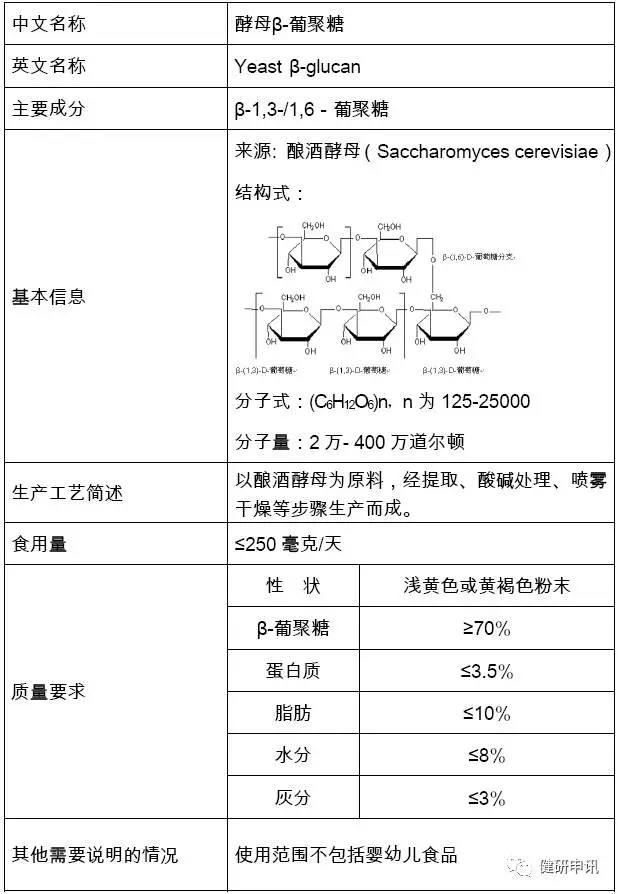 2010年第9號公告批準(zhǔn)酵母β-葡聚糖為新食品原料,公告內(nèi)容: