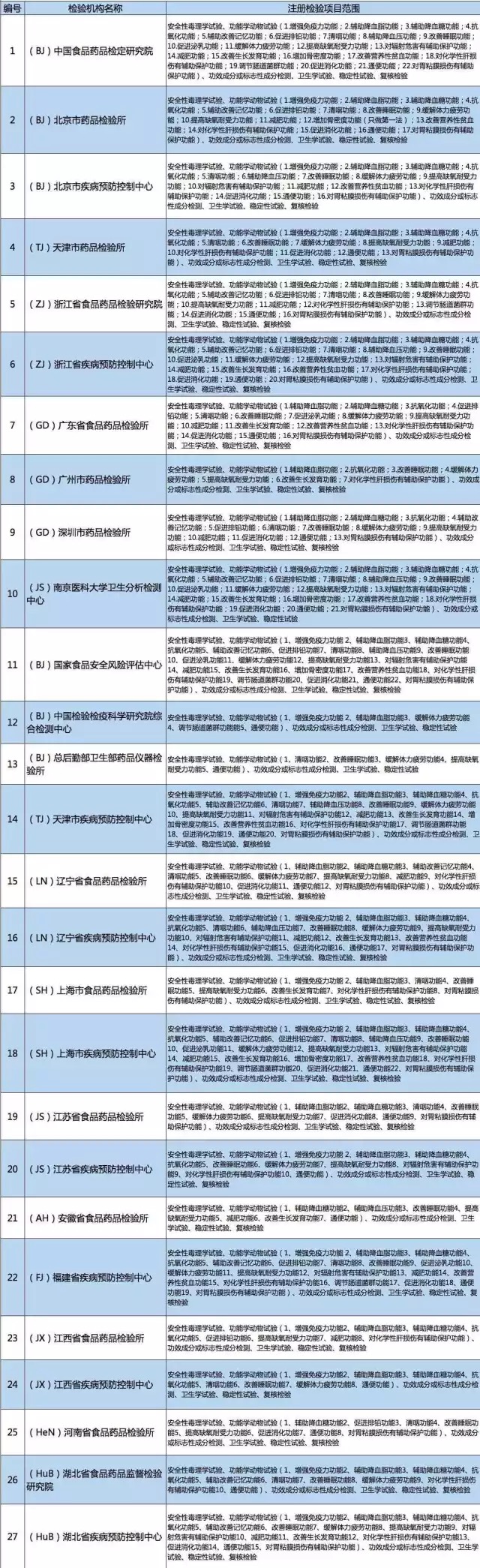 CFDA遴選的58家保健食品注冊檢驗(yàn)機(jī)構(gòu)名單(含檢驗(yàn)項(xiàng)目)