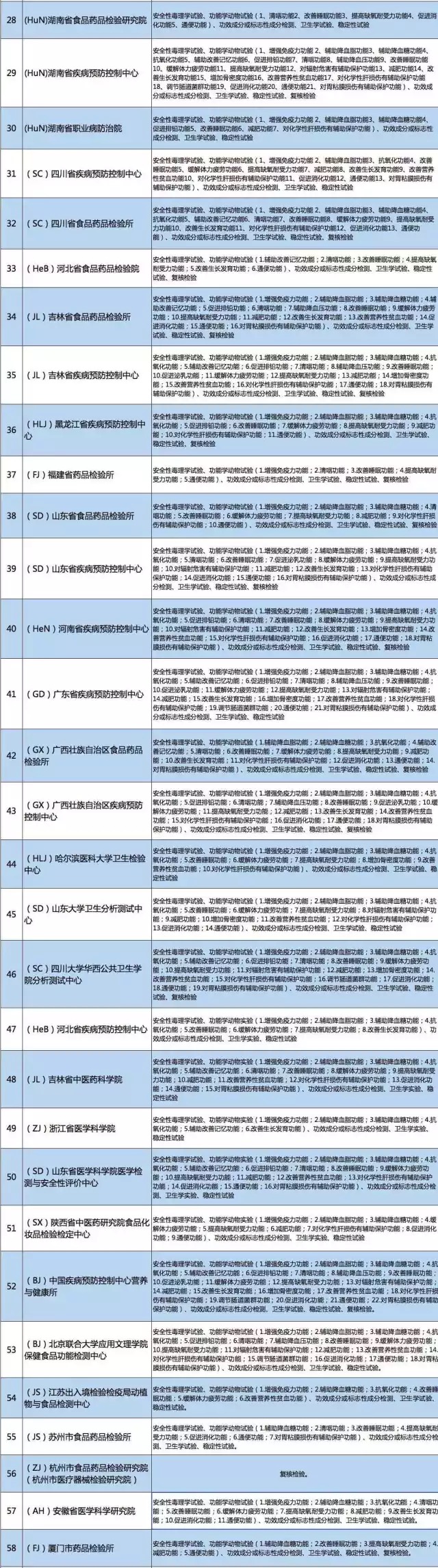 58家保健食品注冊檢驗(yàn)機(jī)構(gòu)名單