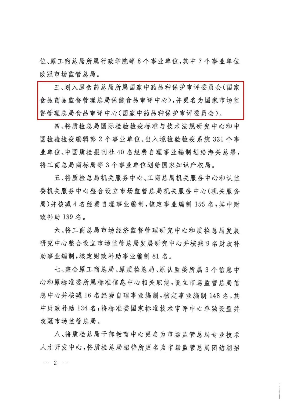 劃入原食藥總局所屬國家中藥品種保護審評委員會(國家食品藥品監(jiān)督管理總局保健食品審評中心),并更名為國家市場監(jiān)督管理總局食品審評中心(國家中藥品種保護審評委員會)。