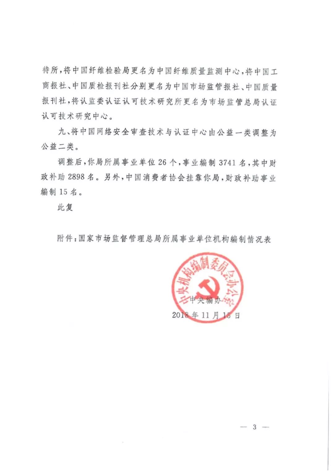 其實在2018年11月15日中央機構(gòu)編制委員會辦公室印發(fā)的文件中第三條明確批復(fù):