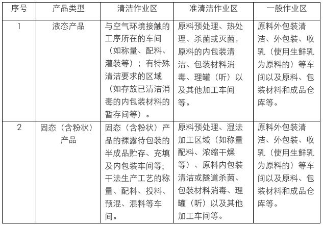 其他類(lèi)型產(chǎn)品的生產(chǎn)車(chē)間及作業(yè)區(qū)劃分參照表2執(zhí)行。