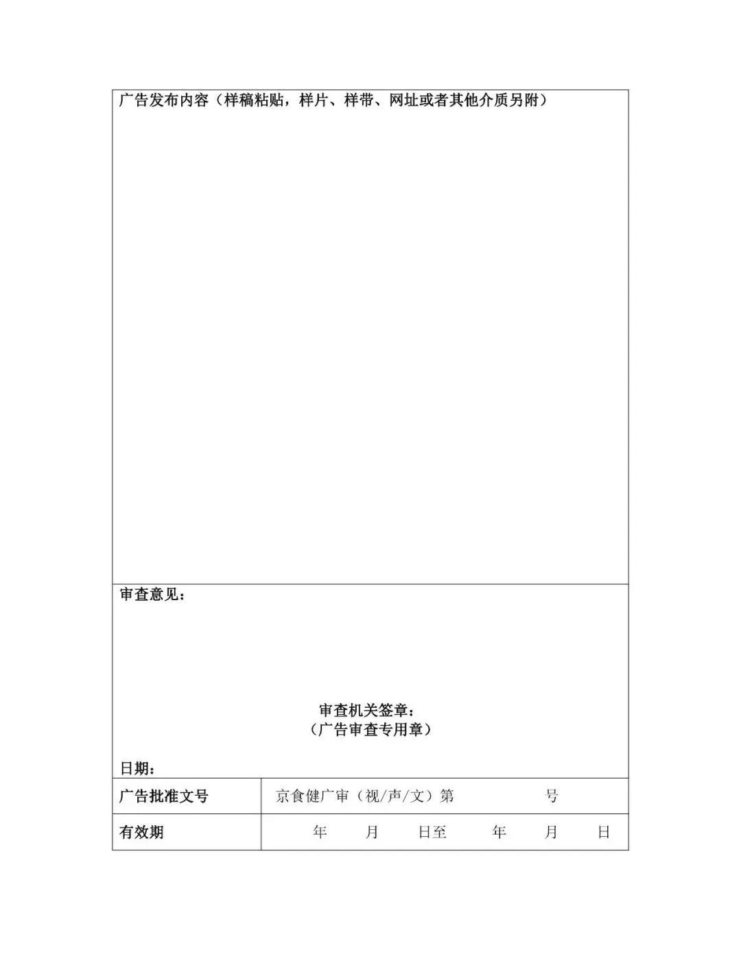 一、自發(fā)文之日起,啟用新版廣告審查表和北京市市場監(jiān)督管理局行政許可專用章(廣告)。(見附件)