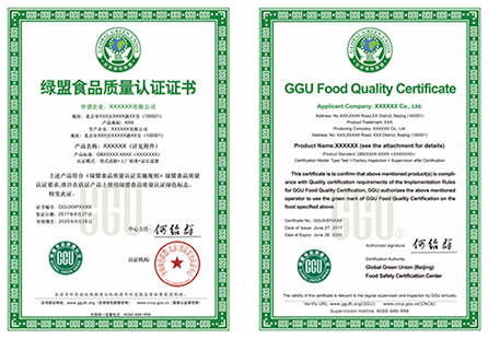 綠盟食品質(zhì)量認(rèn)證證書(中英文版)