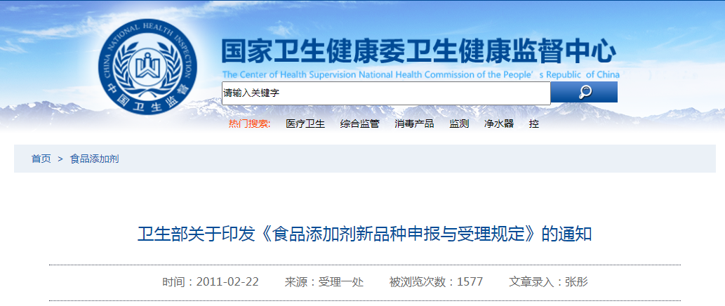 第十九條 本規(guī)定自發(fā)布之日起施行,衛(wèi)生部2002年7月3日發(fā)布的《衛(wèi)生部食品添加劑申報(bào)與受理規(guī)定》同時(shí)廢止。