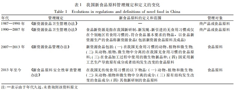 隨著我國(guó)的新食品原料管理制度的變革,新食品原料的名稱也經(jīng)歷了從“新資源食品”到“新食品原料”的變化過(guò)程,新食品原料這一概念的內(nèi)涵和范圍也發(fā)生了相應(yīng)變化。我國(guó)新食品原料定義的變化情況見(jiàn)表 1。